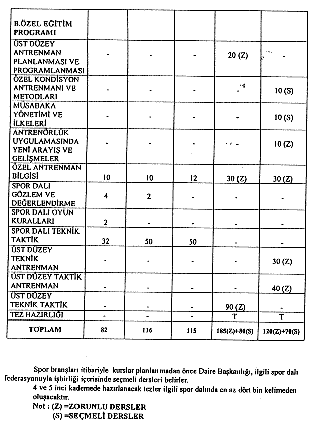 Eğitim Programı :Her kademedeki antrenör yetiştirme kursları ve seminerleri ile bu programdaki dersleri,