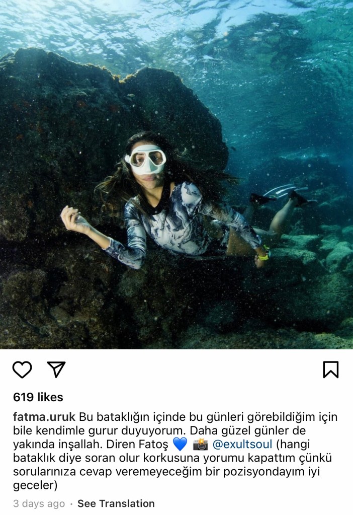 “Bana sosyal medyanı profesyoneller yönetsin, belli kuralların dışına çıkma diyenler oluyor ancak ben burayı beni binlerce kişi takip etsin, herkesin suyuna gideyim diye kullanmıyorum. Eğlenmek ve samimi bir şekilde tecrübelerimi paylaşmak için kullanıyorum. Bu tecrübelerin de hepsi her zaman iyi olmuyor. Fark etmesi çok güç olmadığı üzere milli takım barajlarını geçtiğim için kampa çağrıldım. Kampa gelmemeyi teklif ettim çünkü 18 yaşından bu yana bu kampların nasıl geçtiğini, işlerin nasıl yürüdüğünü, adaletsizliği, yozlaşmayı adımdan iyi öğrendim. Talebim kabul edilmedi, çünkü fatmauruk’un gülümseyerek o ortamda poz vermemesi bir şeylerin ters olduğunun kanıtı olacaktı. Söz dinledim, beni seven ve destek olan (içeriden) insanların da çabalarıyla dayanmaya çalıştım. Fakat akıl ve ruh sağlığımı koruyamadığım, performansım mevcuttan bile geri düşmeye başladığı, severek yaptığım şeyden bıkma noktasına geldiğim için, her şeyden önemlisi bunları hak etmediğim için tekrar ayrılmak istedim. Talebim yine kabul edilmedi. Ben ”milli takımı istemeyen, ülkesini sevmeyen” insan olarak gösterilirmişim (öyle gösteririz diyorlar yani) .