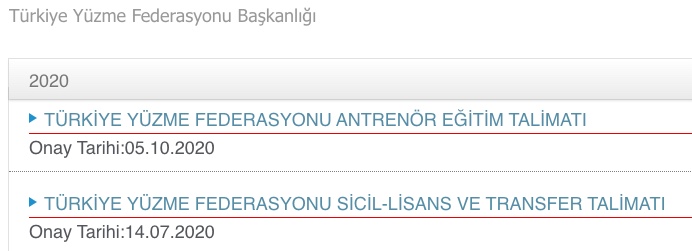 Türkiye Yüzme Federasyonu’nun sayfasına baktığımızda, 2018 yılında iki talimat yayınlanmış. O sene Disiplin Talimatı yayımlanmamış